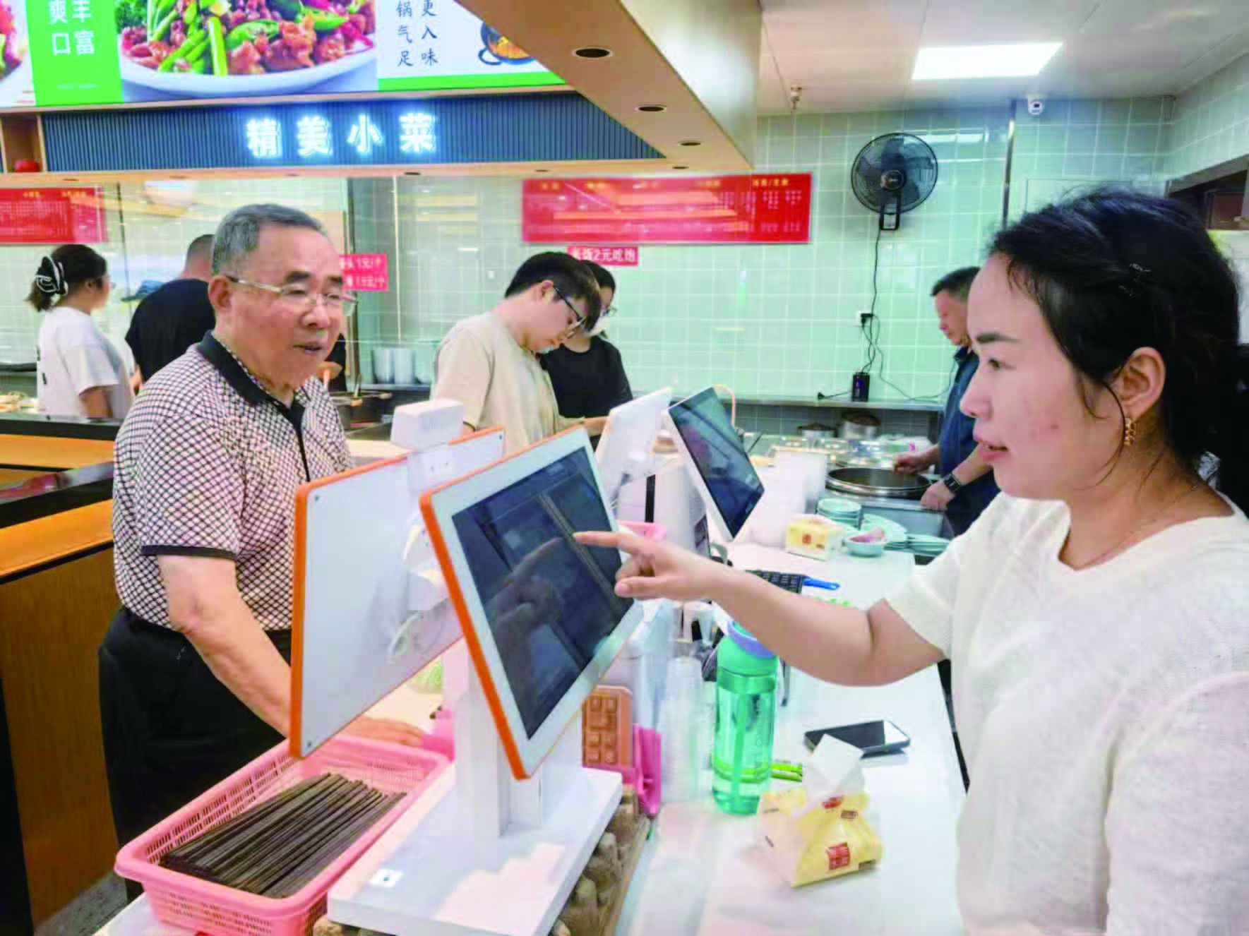 本报讯 (全媒体记者 张予钦 朱宇晔 徐建彬) 20日,临近中午,岔河镇金悦汇的一家餐厅渐渐热闹起来。诱人的饭菜香气在空气中弥漫,窗口内,工作人员正将热气腾腾的西红柿炒蛋、红烧肉、清炒时蔬等菜肴一一摆好,色泽鲜亮,引人垂涎。