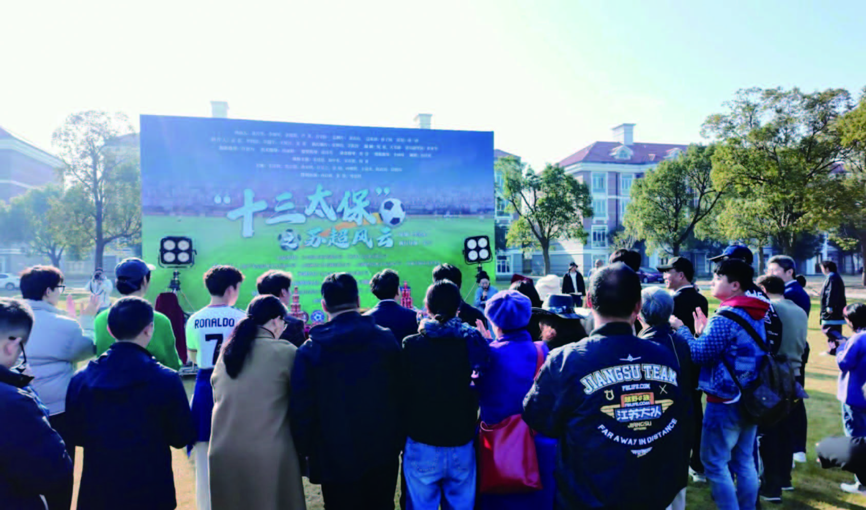 近日,体育题材网络短剧《“十三太保”之苏超风云》在我县开机。剧集以江苏省城市足球联赛(苏超)为背景,讲述了一群草根球员在绿茵场上顽强拼搏、追逐梦想的励志故事。据悉,本剧采用横屏形式拍摄,计划制作24集,每集时长约10分钟,拍摄周期20天左右,预计于2026年3月至5月第二届“苏超”常规赛期间上线播出。